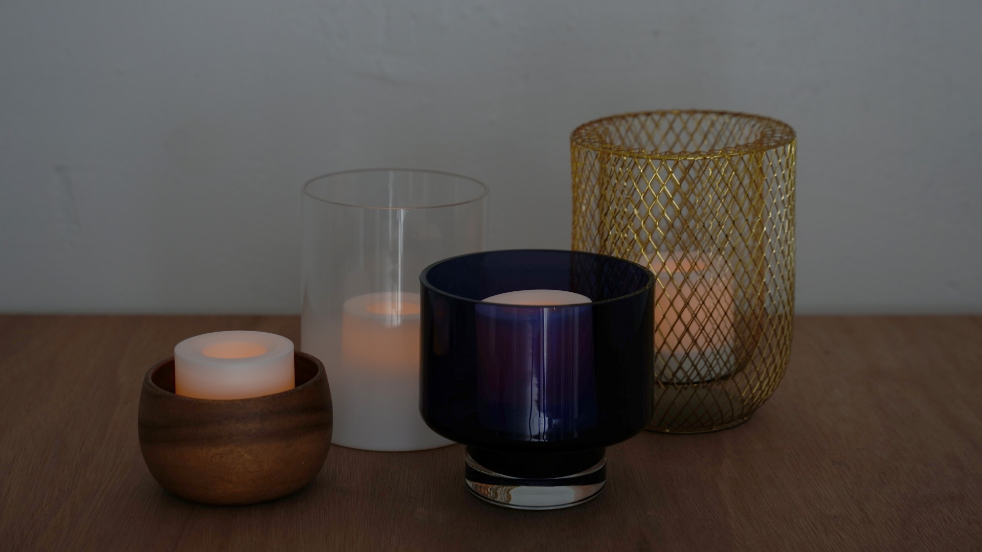 キャンドルホルダー、花瓶、木製のボウル。家にある入れ物に入れるだけで、あなただけのあかりが完成します。※入れ物は付属しません。
