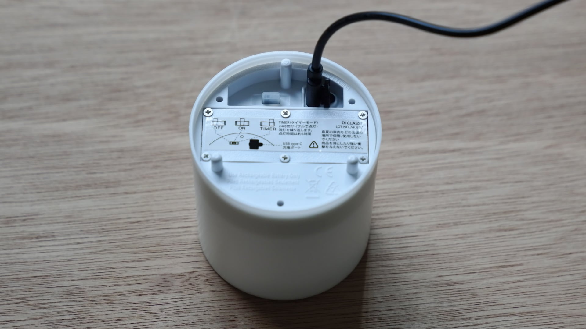 USB Type-Cで繰り返し使えて、IP54取得でテラスや洗面所でも安心。 タイマー機能(1日5時間点灯)を使うことで、約1週間ほど連続使用できます。